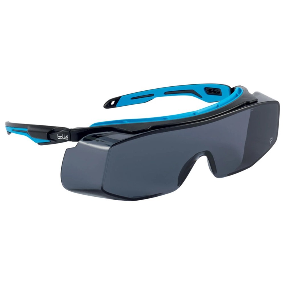 Γυαλιά προστασίας TRYON OTG smoke, σχεδιασμένα για χρήση πάνω από γυαλιά οράσεως, με PLATINUM επίστρωση αντιθαμβωτική και αντιχαρακτική και ρυθμιζόμενους βραχίονες για άνετη και σταθερή εφαρμογή.