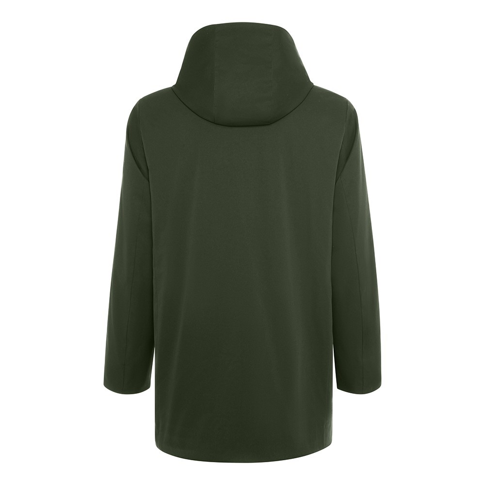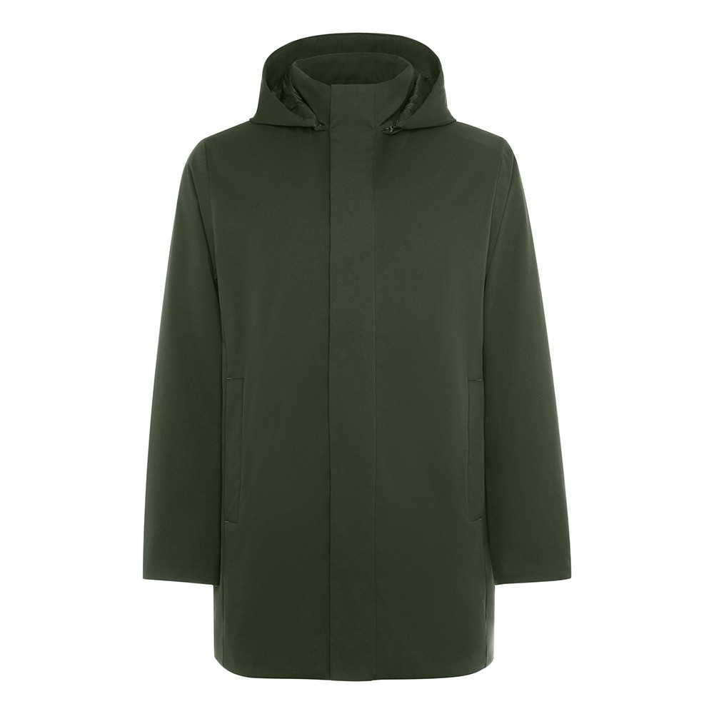 Το μπροστινό κλείσιμο περιλαμβάνει διπλό φερμουάρ δύο κατευθύνσεων, καλυμμένο με πατιλέτα και κουμπιά snap για επιπλέον προστασία από τον άνεμο. Οι δύο πλαϊνές τσέπες με καπάκι και κουμπιά snap και η εσωτερική τσέπη με κρυφό φερμουάρ εξασφαλίζουν ασφαλή αποθήκευση αντικειμένων.
